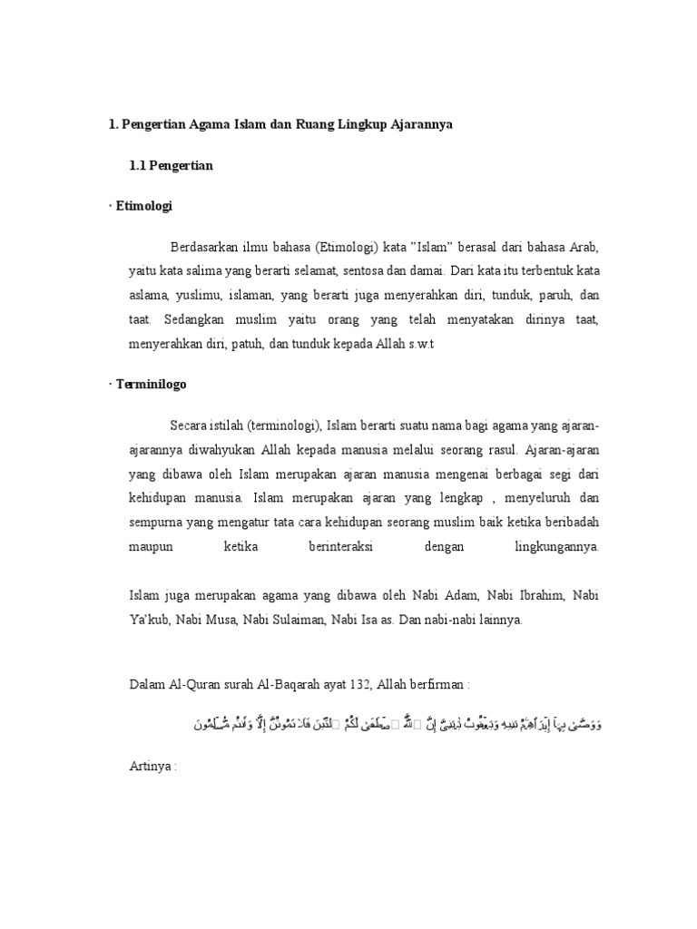 Doc Pengertian Agama Islam Dan Ruang Lingkup Ajarannya 1