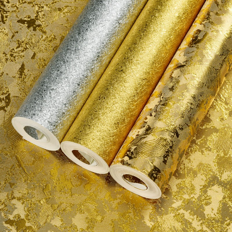 Wallpaper Foil Warna Emas Kuning Perak Untuk Kamar Tidur Hotel Ruang Tamu