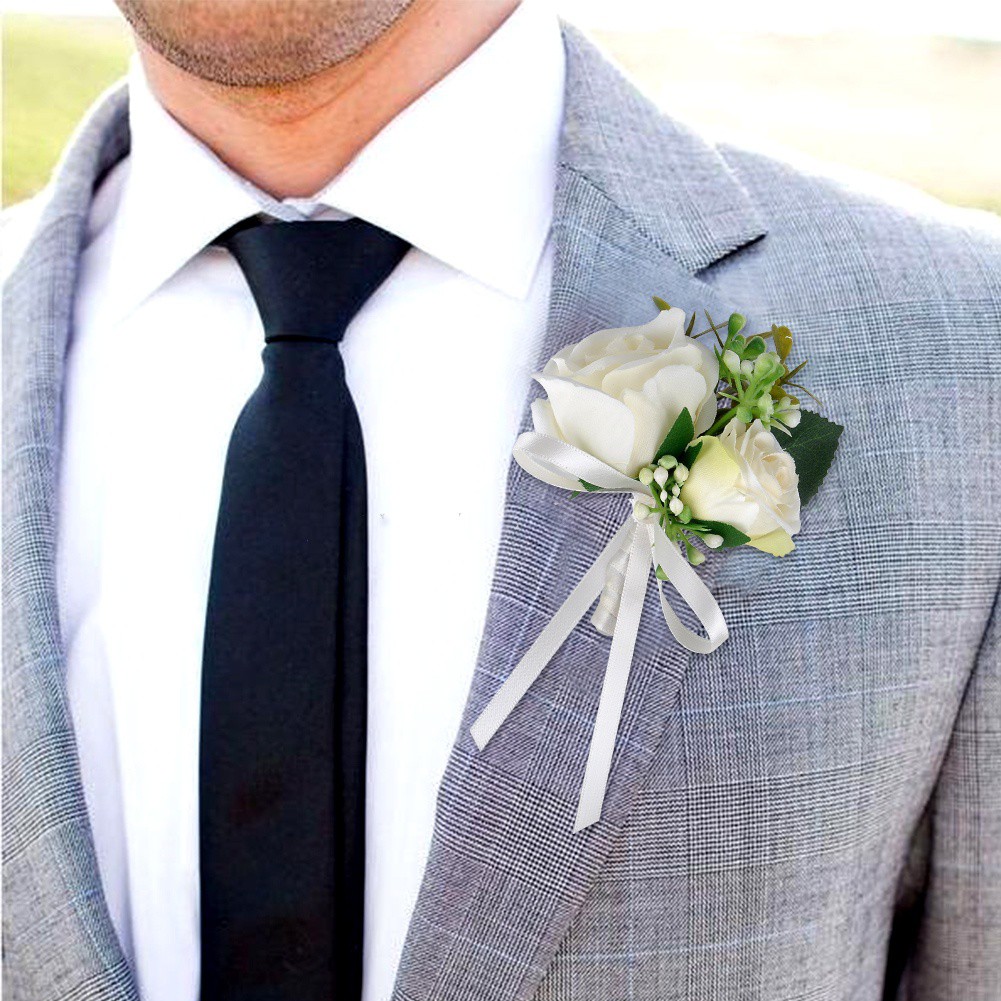 Sale Korsase Pengantin Pria Bunga Mawar Plastik Artificial Male Corsage Rose Flower Jas Wedding