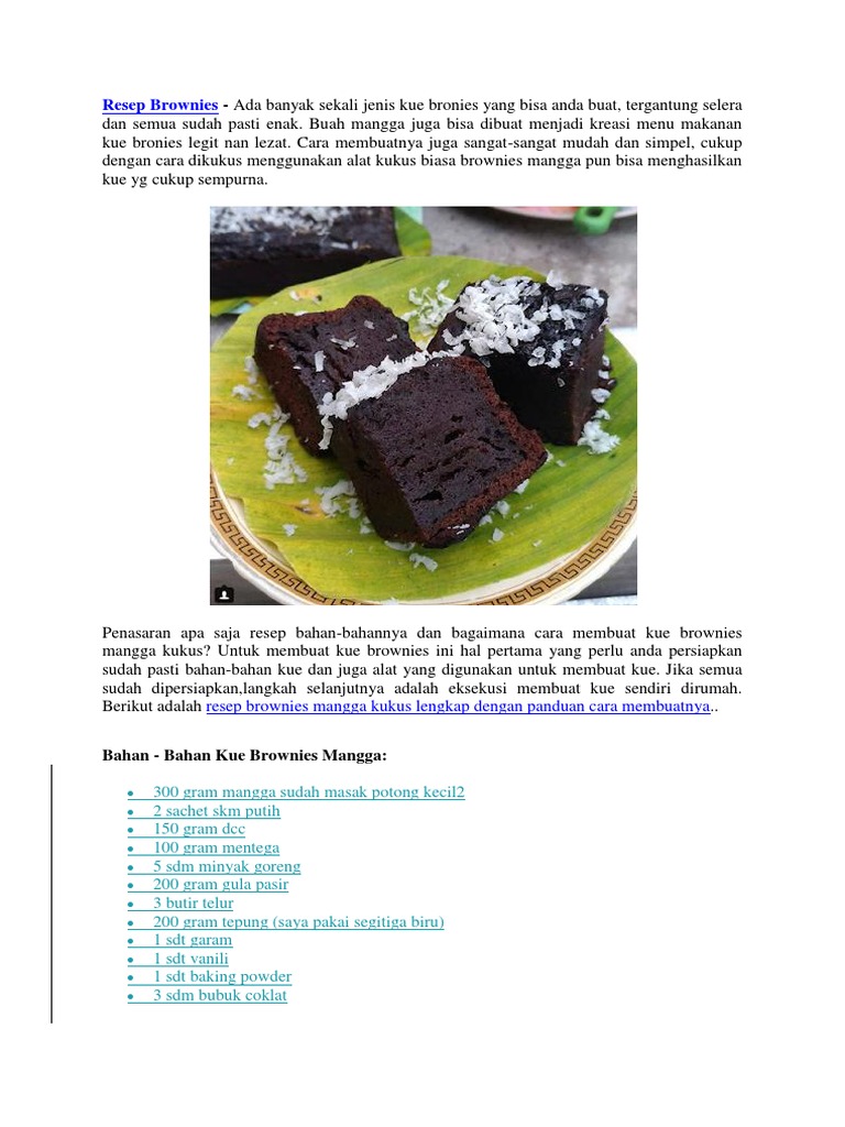 Info Untukmu Resep Kue Brownies Kukus