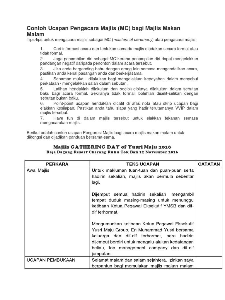 Teks Ucapan Pengacara Majlis