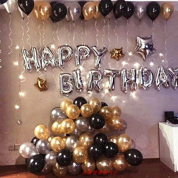 Lampu Led Selamat Ulang Tahun Balon Set Hitam Merah Muda Emas Balon Pesta Ulang Tahun Dekorasi Anak