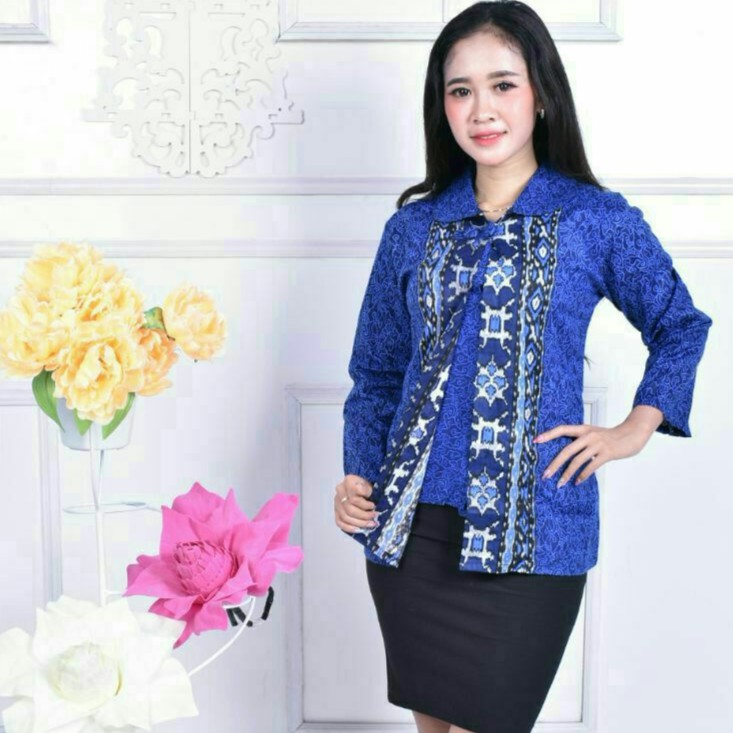Baju Batik Wanita Modern Warna Biru Baju Batik Kerja