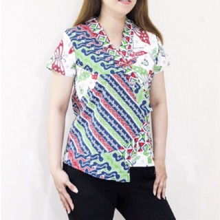 Atasan Blouse Kartini Sarah Kemeja Batik Lengan Pendek Wanita